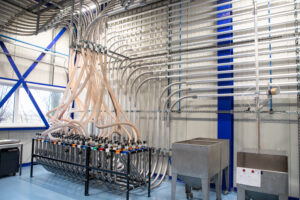 Omefa approached Walraven to develop a horizontal and vertical pipe-fixing network that would fit into the new part of the building and facilitate the relocation of silos without disrupting the efficient material flow. Indeed, one side of the building is dedicated to raw materials, which undergo various processes before being transformed into finished products on the opposite side.